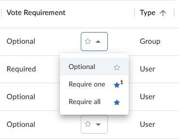 For groups, select on of the following vote requirements.